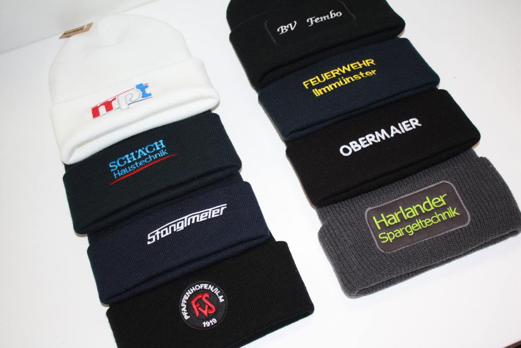 Mit individuell bestickten Mützen, Caps oder Schals stärken Sie Ihre Marke und sorgen für einen professionellen Auftritt.